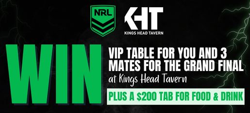 Experience the NRL Grand Final live at Kings Head Tavern Sports Bar on our brand-new big screen, with unbeatable siren-to-siren happy hour specials. Don’t miss the best place in town to watch the big game!