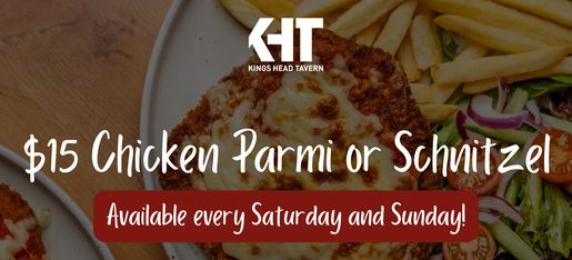Enjoy our Classic Chicken Parmi or Schnitzel for just $15 every Saturday and Sunday!